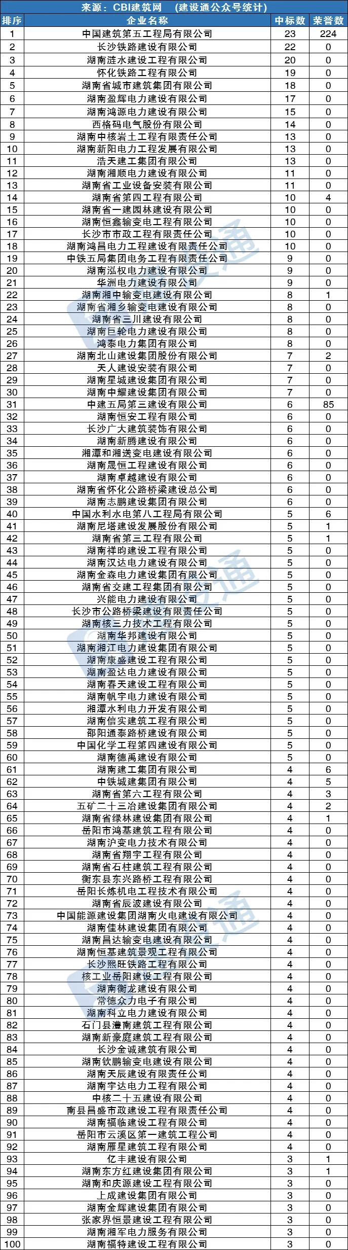 CBI建筑網綜合報道:在2022年5月,湖南建筑施工企業中標數量達1848項,環比(與上個月相比)上升7.63%,同比(與去年同期)下降13.52%。其中,中國建筑第五工程局有限公司、長沙鐵路建設有限公司、湖南漣水建設工程有限公司分列中標數量排行榜前三位。