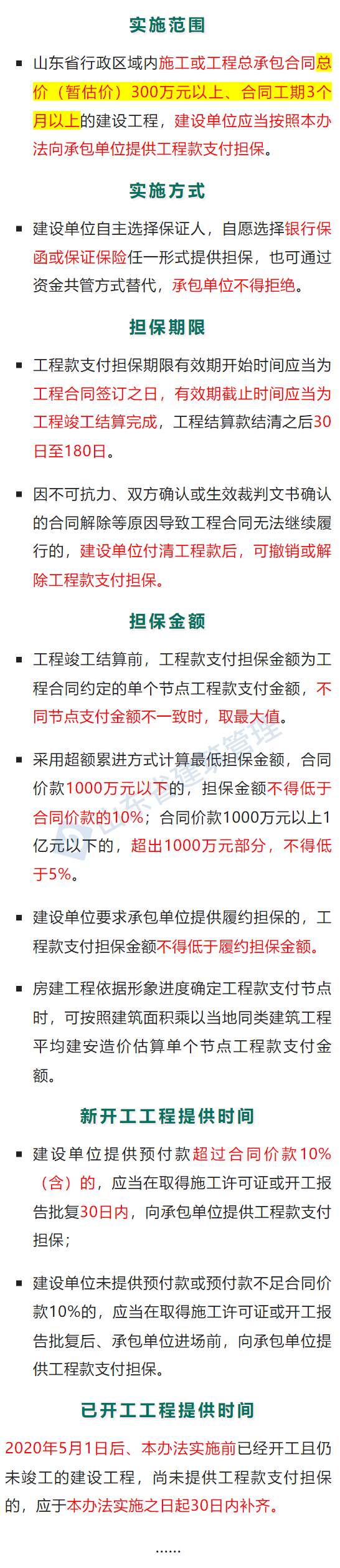7月6日,山東省住建廳發布《關于對<山東省工程建設領域工程款支付擔保實施辦法(試行)(征求意見稿)>公開征求意見的公告》,明確: